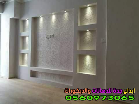ويمكن عمل رفوف من الجبس في الحوائط لتعطي مظهر مميز للحوائط وتستخدم في وضع التحف او الكتب
